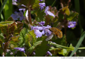 Le lierre terrestre se plait beaucoup dans notre jardin où il s’étend vigoureusement dès qu’un espace est à sa portée. Si sa floraison est discrète tant ses fleurs sont petites, à peine un centimètre, elle est d’une exceptionnelle longévité. Ses inflorescences se succèdent de façon continue de mars à octobre ce qui en fait une plante précieuse pour les butineurs.