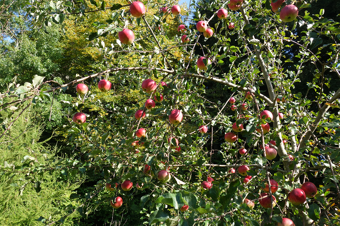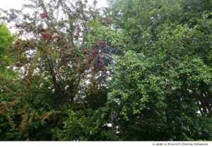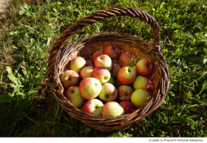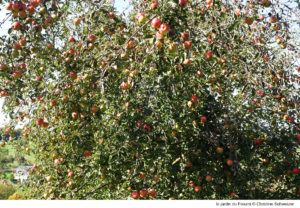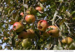 Même si une large part du jardin est consacrée aux plantes sauvages, les espèces cultivées et nourricières y ont aussi leur place. Ainsi, au fil des années, nous avons planté plus d’une dizaine de variétés de pommiers qui, cet automne, ont fructifié d’une façon exceptionnelle.